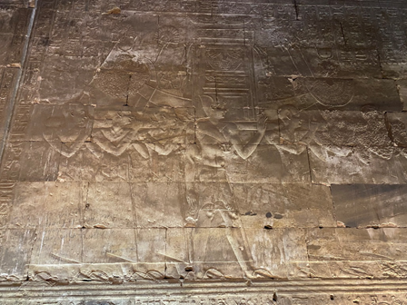 (ภาพสลักในวิหารเอ็ดฟู แสดงให้เห็นนักบวช(ยืนตรงกลาง) ในขบวนแห่ของเทศกาลโอเปต (OPET FESTIVAL) ของอียิปต์โบราณ)