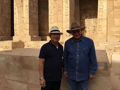 (ผู้เขียน กับ ดร.ซาฮี ฮาวาส ในวิหารของรามเซสที่ 3 )