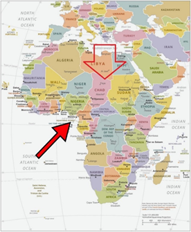 (ลมมรสุมตะวันตกเฉียงใต้(ลูกศรสีทึบ) พัดจากมหาสมุทรแอตแลนติคเข้ามา และ ลมจากทะเลเมดิเตอร์เรเนียน(ลูกศรโปร่ง) ที่พัดเข้ามา ปะทะกันและช่วยสร้างความชุ่มชื้นให้แก่อัฟริกา)