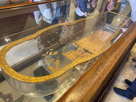 (โลงศพที่บูรณะขึ้นมาจากโครงโลหะที่อยู่รอบนอกเป็นตัวต้นแบบ-ภาพโดยผู้เขียน)